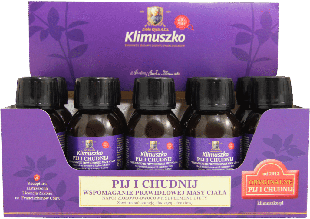 Zielarnia Klimuszko stworzyła i jako pierwsza wprowadziła na rynek produkt Pij i chudnij w 2012 roku. Inspiracją były mieszanki ziołowe na odchudzanie Ojca Klimuszko.